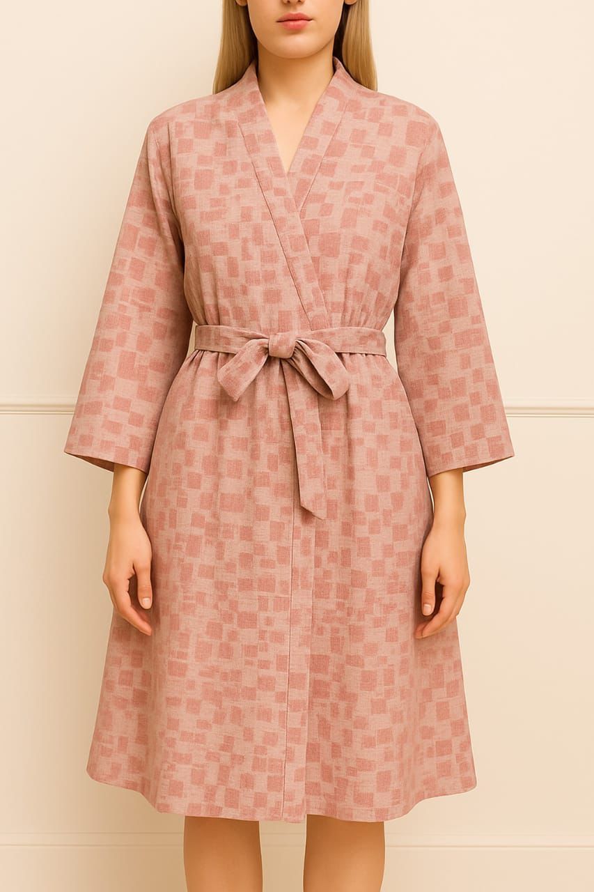 Embrace cozy elegance with this beautifully textured rose bathrobe. Featuring a subtle geometric pattern and a flattering belted waist, it’s crafted for comfort without compromising style. Perfect for your morning routine or unwinding after a long day, this lightweight robe brings a chic touch to your loungewear collection.
